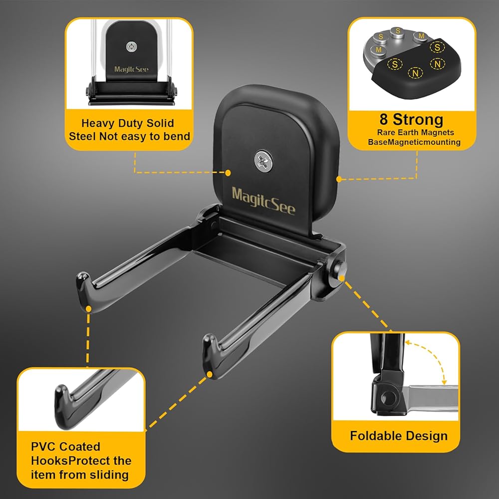 2 Pack Heavy Duty Magnetic Grill Hooks, Foldable Organization Scratch-Free Versatile Strong Magnet to Hang The BBQ Tools, Outdoor Hanging,Kitchen Utensils,Keep Home Garage Space Free!