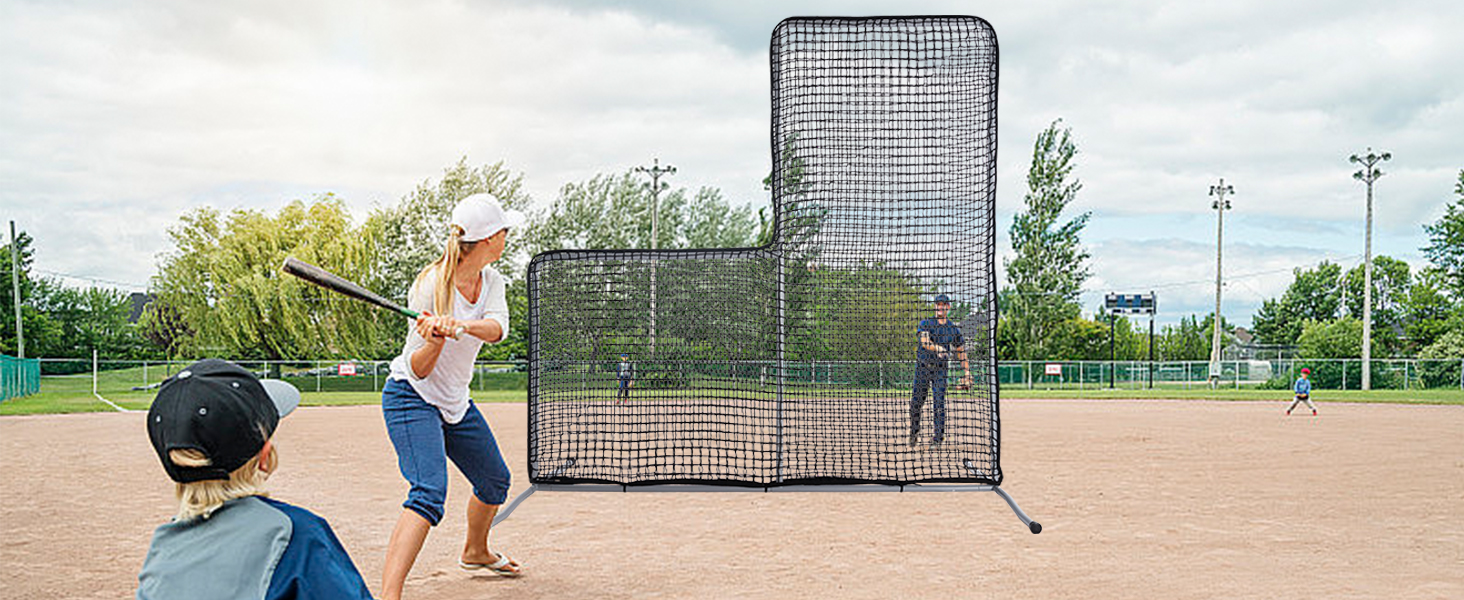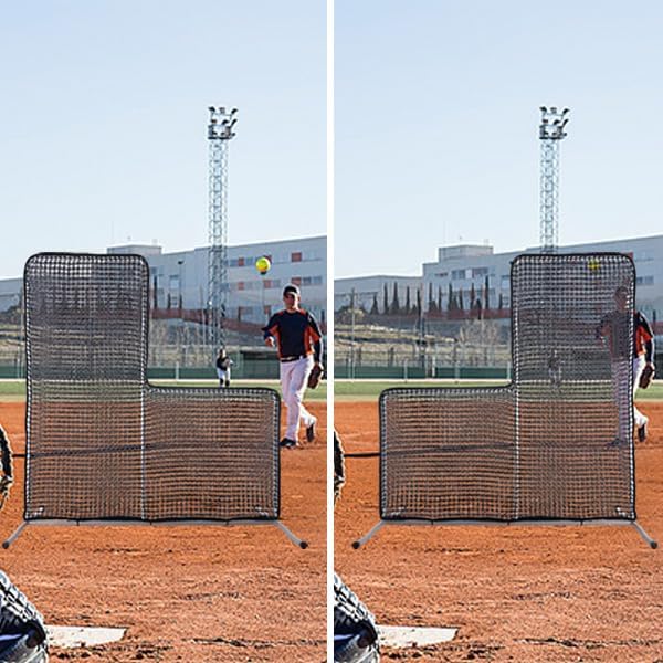 Assembly portability: Despite its sturdy steel frame, the L Screen is lightweight and the button assembly is easy to carry, assembled and disassembly in a few minutes, the net can easily be overlaid on the frame of the screen and quickly assembled by simply sliding the net over the frame, so you don't have to waste valuable practice time setting up and packing up the equipment. Whether on or off the field, this protective pitcher barrier is easy to store and transport.