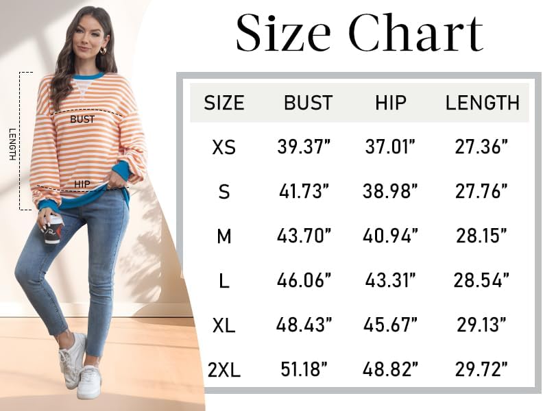 [Style]: The color block striped sweatshirt features a relaxed and casual fit, with ribbed cuffs and hem. The ribbed detailing adds a subtle texture and a touch of stylishness to the overall design. It has a classic round neckline, which offers a versatile and timeless look