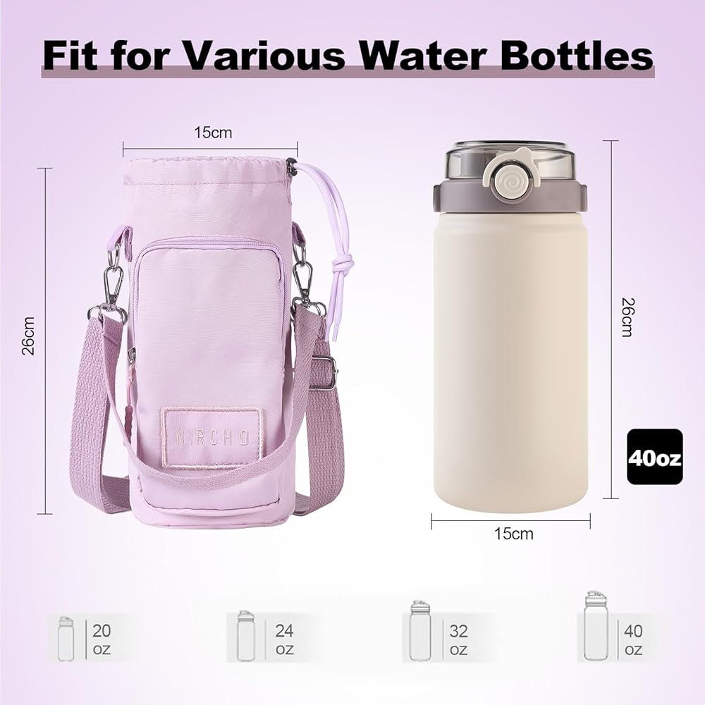 Fit the 40oz Water Bottle Jug: Our water bottle carrier is 10 inches tall and 5 inches in diameter, fits most common brands of 40 oz water bottle jugs. Great for glass, stainless steel insulated and plastic bottles, nonpourers, sports drinks and energy drinks.