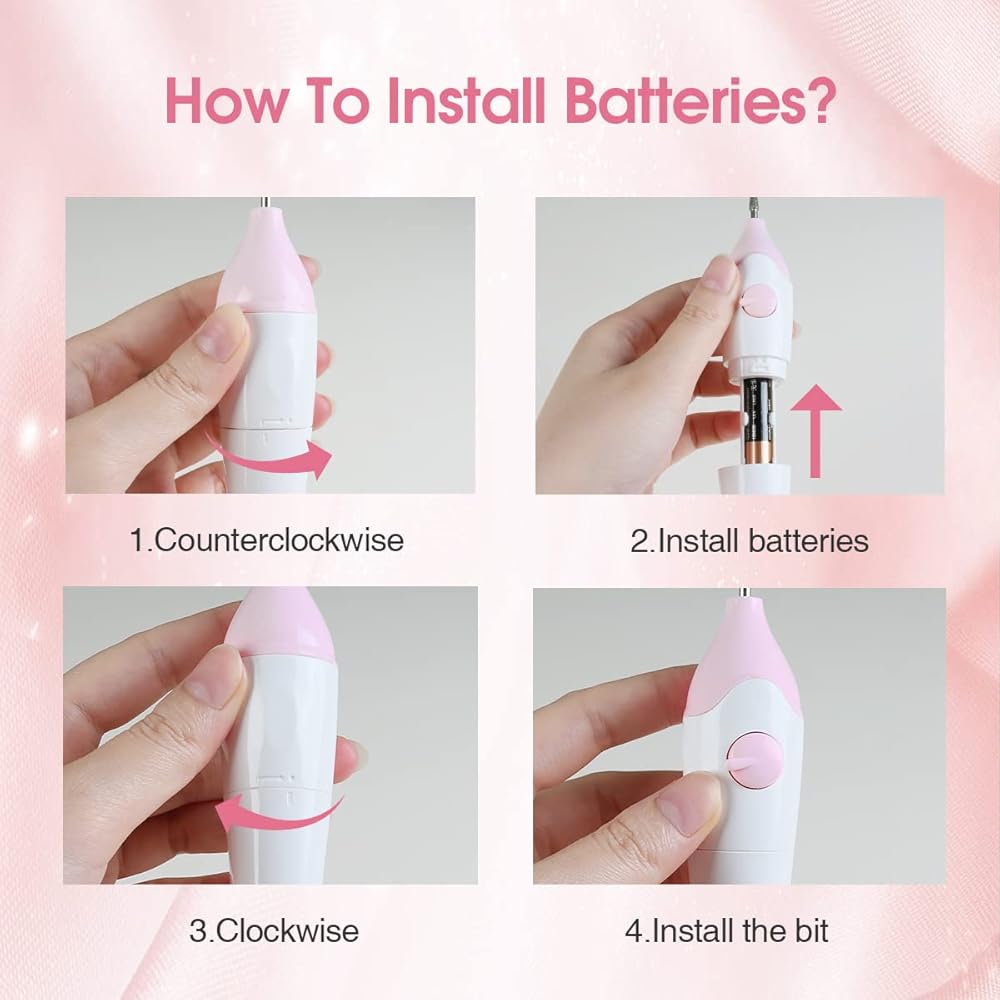 Portable electric manicure set is just insert 2 AAA batteries(not included), One button design is easy to use for anyone. lightweight enough can take it when you go to travel or outside