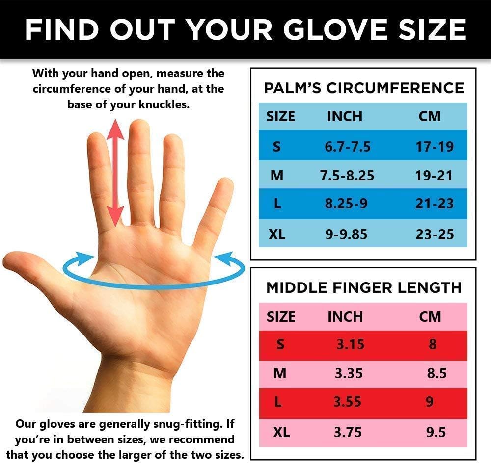 ✋HAND SIZE CHART – Measure Hand circumference below the knuckles without including the thumb. Small: (6.70"- 7.50"), Medium: (7.50"- 8.25"), Large: (8.25"- 9.00"), XLarge: (9.00"- 9.85")