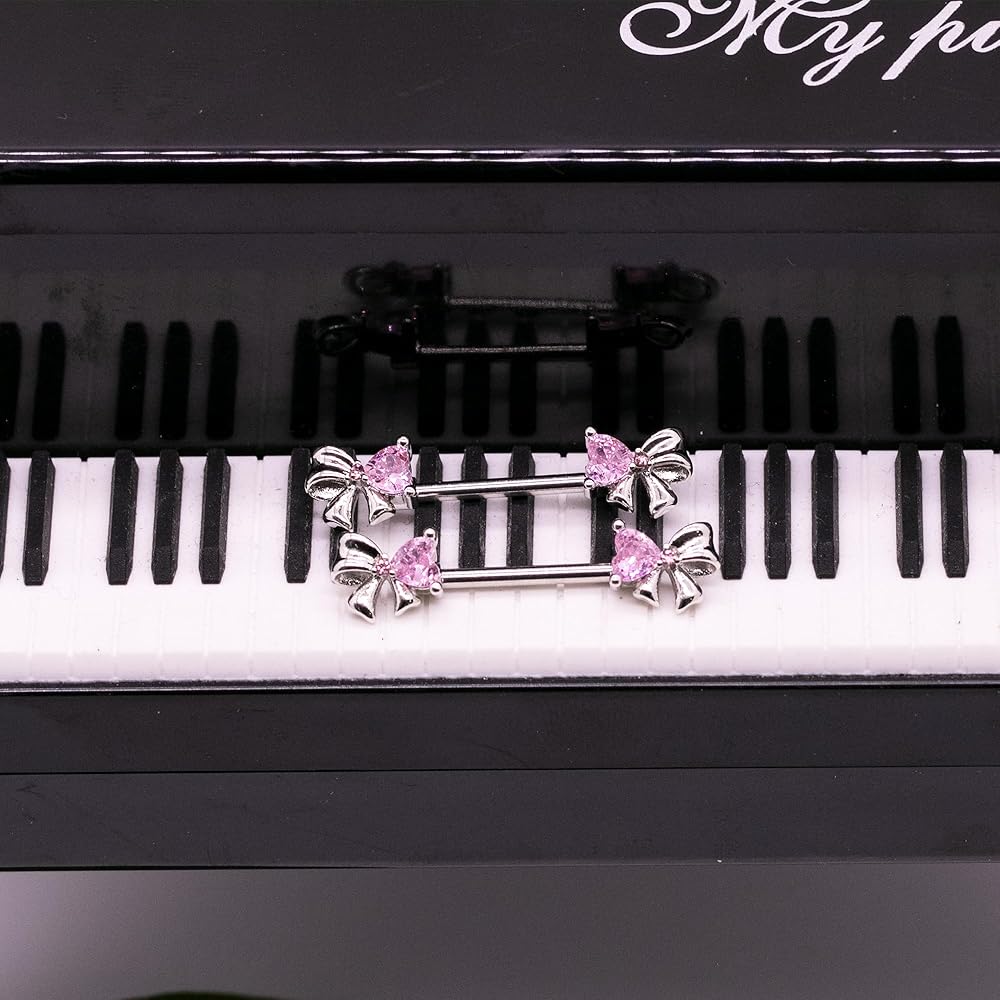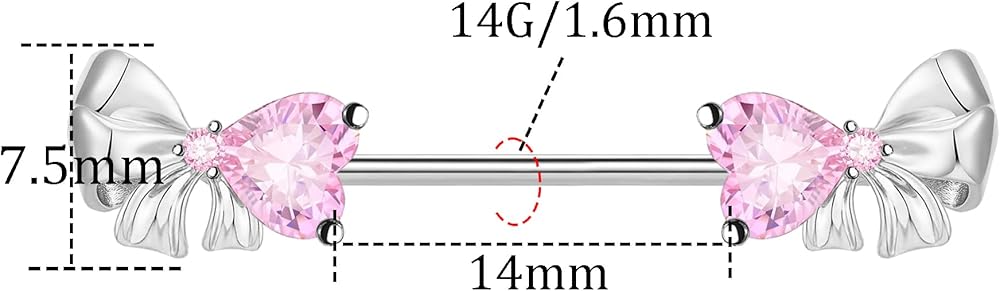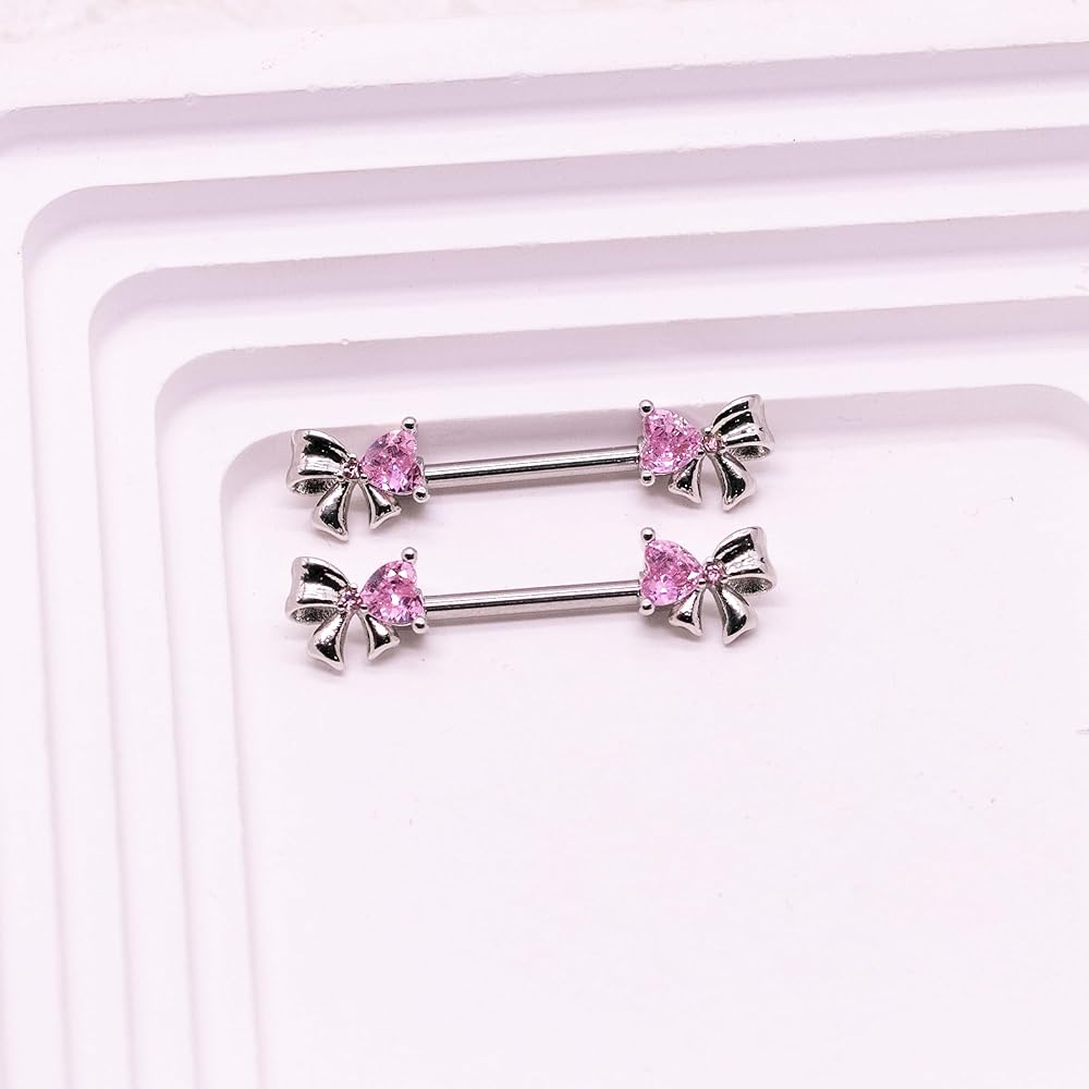 One Order Contains 1 Pair Bowknot adorned with heart CZ Nipple Barbell rings.