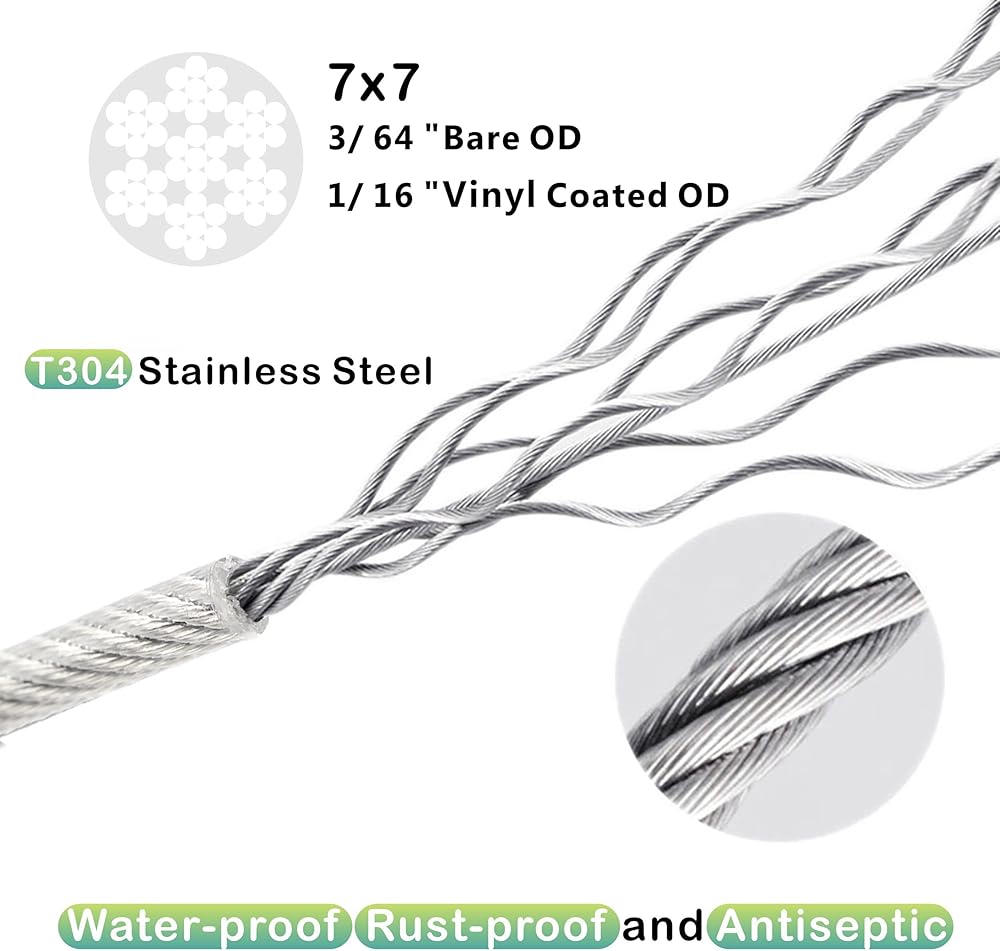 Characteristic of 304-Stainless Steel vinyl coated Cable: resistance to rust and corrosion so you can use the cable rope both indoors and outdoors;The construction of this wire rope provides a good balance of abrasion resistance and flexibility.Coated with vinyl, this wire rope resists UV rays.