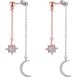 Silver Moon Star Drop Earrings for Women Girls 925 Sterling Silver Sun and Moon Earrings Handmade Crescent Moon CZ Wedding Stud Earrings Celestial Jewelry