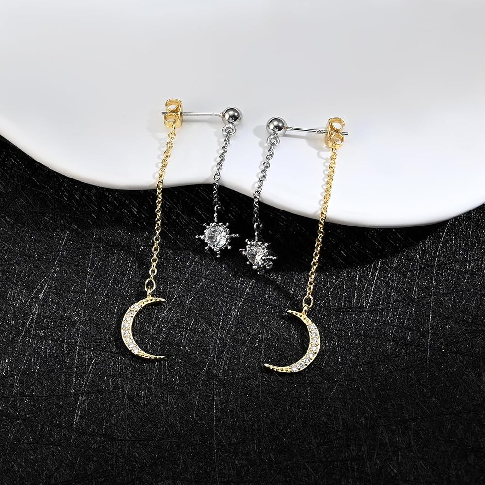 [Unique Design] These moon and star earrings are inspired by celestial bodies and are suitable for women of all ages to wear. The stars and moon pendants will sway with your movements, reflecting the beauty of movement. There is also a shiny zircon on the star, making these dangle drop earrings even more charming.