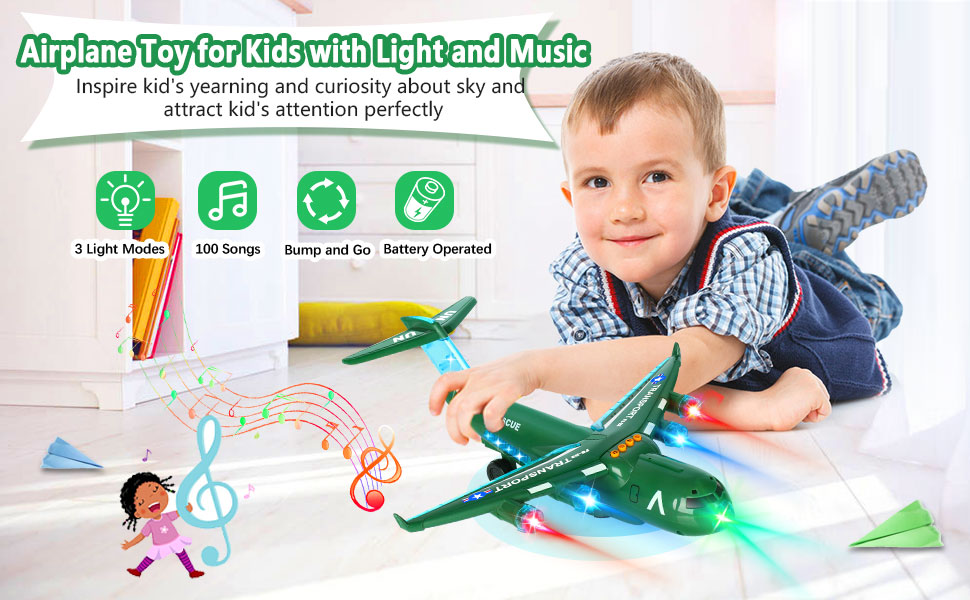 Airplane Toy for Kids: This is an wonderful gift for children who are keen on the sky or space. The toy airplanes can emit bright and flashing LED lights when in use. Meanwhile, the airplane toys can also play musics, which will arouse your kid's interest and visual/imaginative ability. And this kids airplane toy is quite safe for your children, it only moves on the ground, so you needn't to worry about children getting hurt
