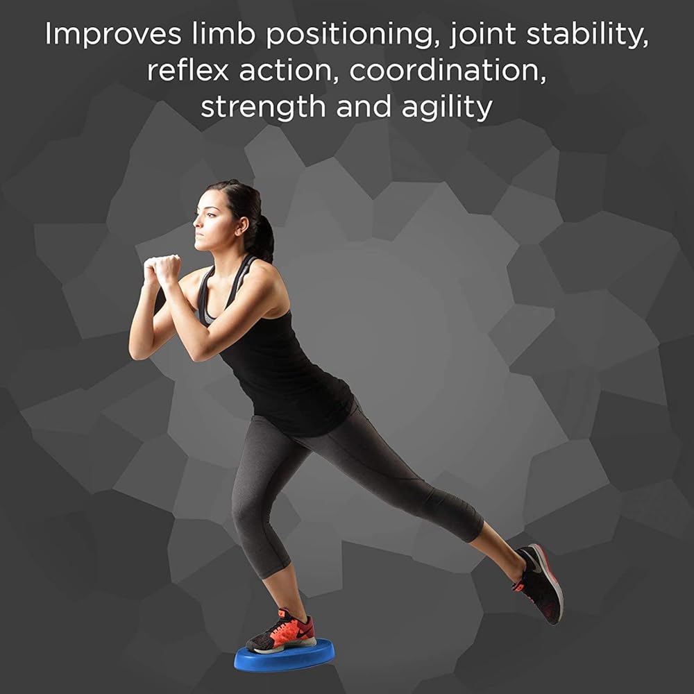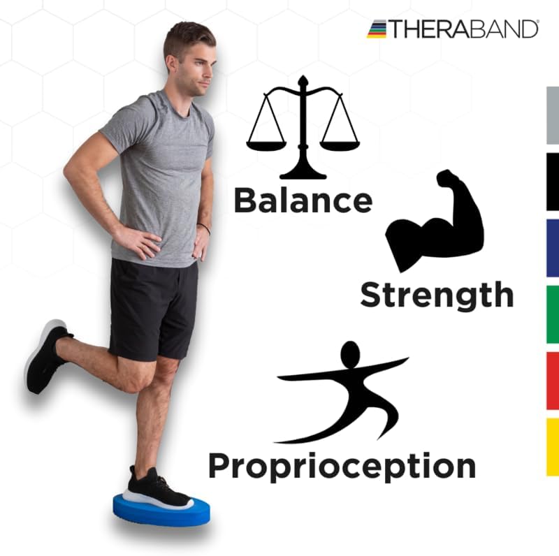 Oval-shaped, soft blue pad made of closed-cell foam is the intermediate level of THERABAND progressive stability and balance exercise products and is more difficult than the firm green foam pad