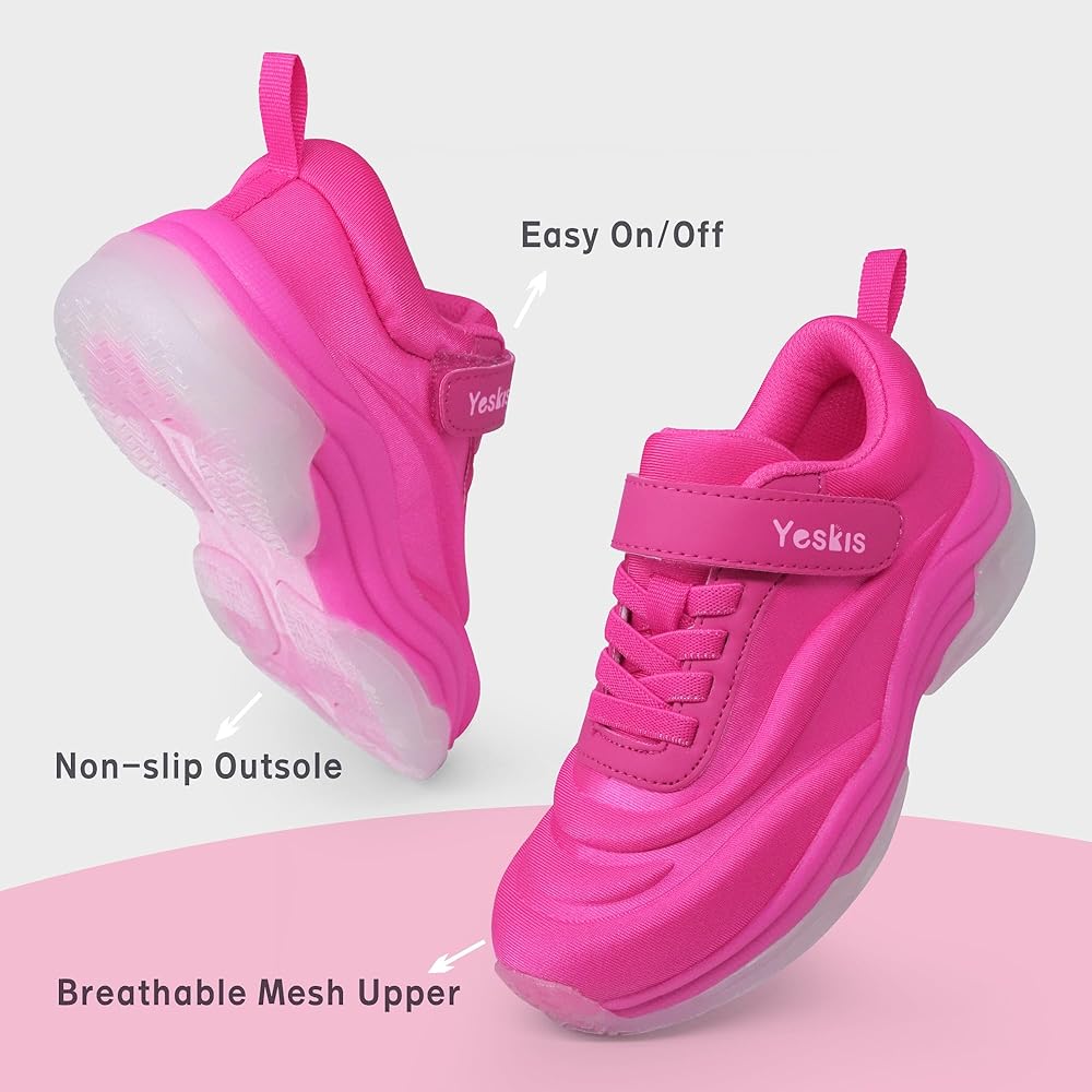 Breathable And Stylish : Kids led walking sneakers feature a beautifully streamlined design with a silky-smooth surface and a translucent jelly-like outsole that makes our toddler tennis shoes unique. Breathable mesh on the outside ensures optimal air circulation even when playing sports.