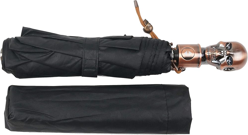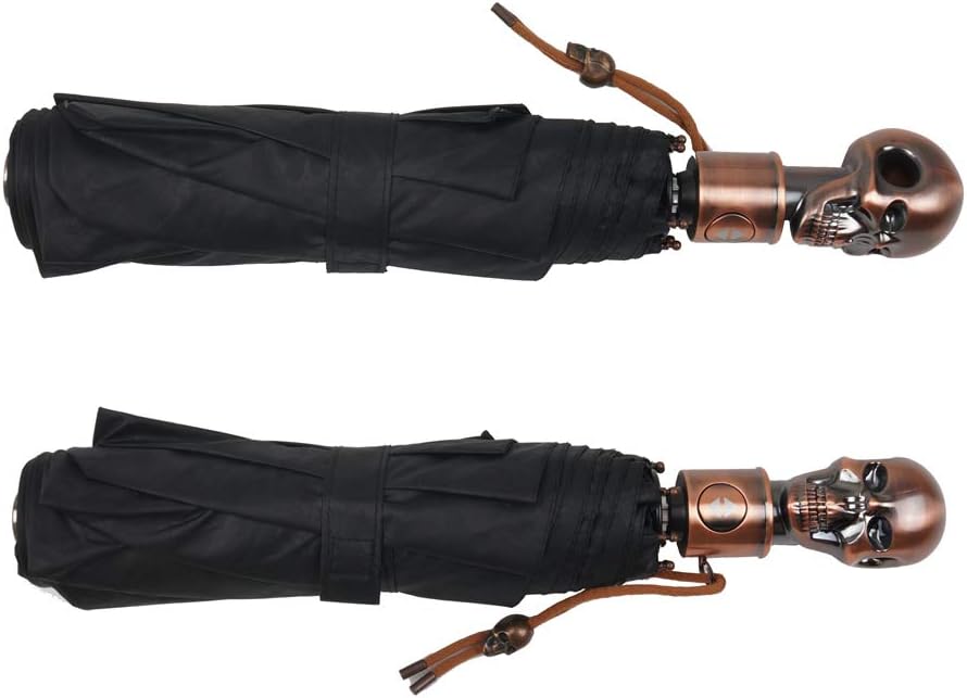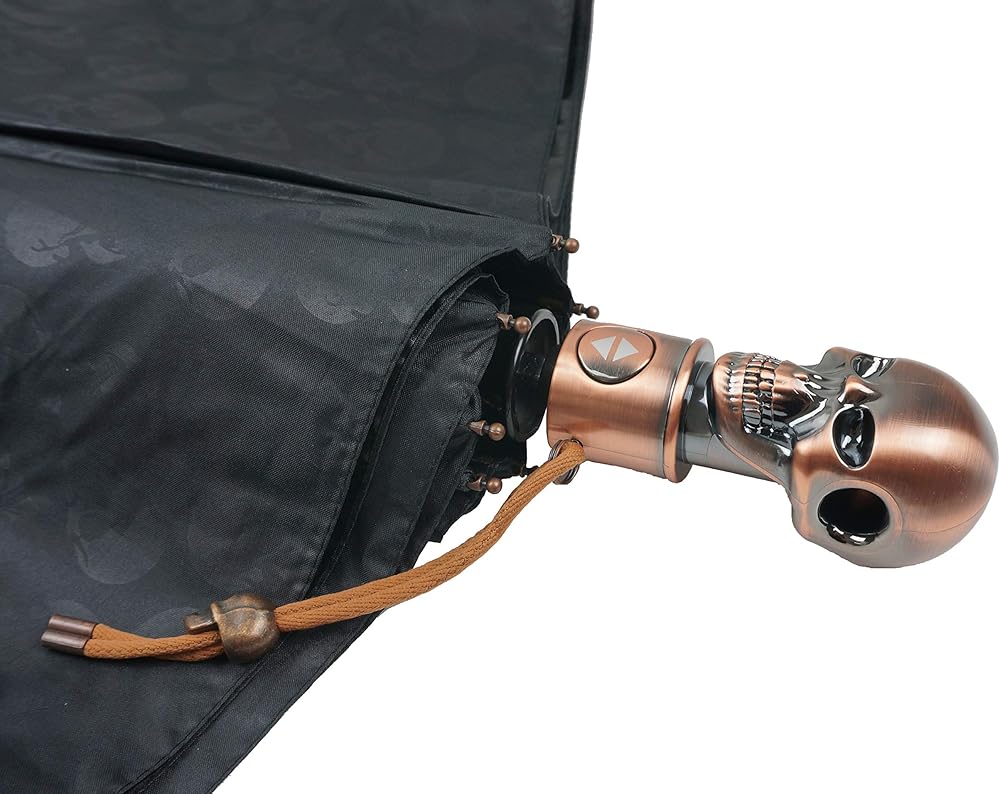 Auto Open and Close triple-folding umbrella cool skulls printed canopy skull shaped handle inner UV protection coating parasol