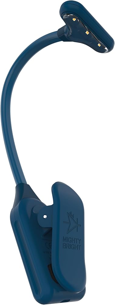 Mighty Bright The Original NuFlex Book Light, Battery-Powered, Warm Eye Care LEDs, Flexible, Durable, Dimmable, Clip-On Reading Light, Read in Bed, Use Batteries or Micro USB (Midnight Blue)