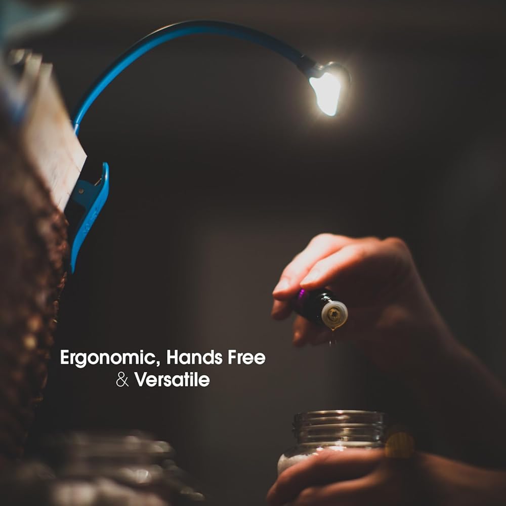 Lightweight, portable, and multi-purpose – not just for books! It can be used free-standing on its wide base and the secure padded clamp opens to 1.5”, making the NuFlex perfect for camping, kids' reading, studying, on music stands, as an automotive repair light, a computer light, for tasks, crafts & hobbies, travel, and for reading in bed without disturbing your partner.