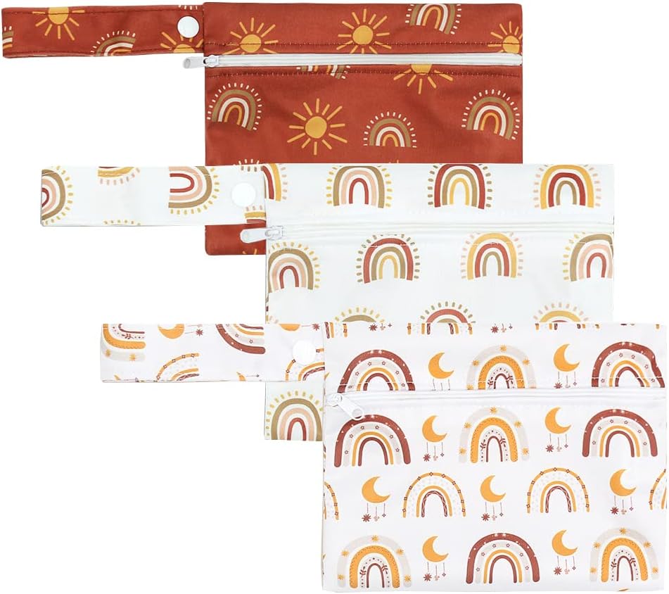Wet bags include zip closure and handy wrist strap for travel or to hang on pram or nappy change table.