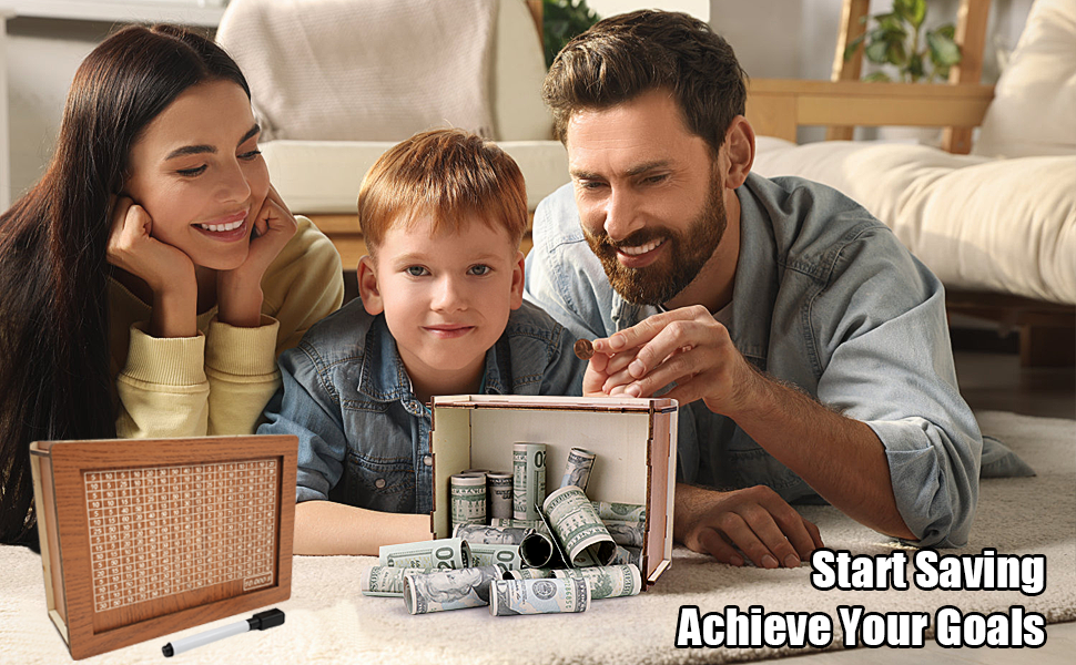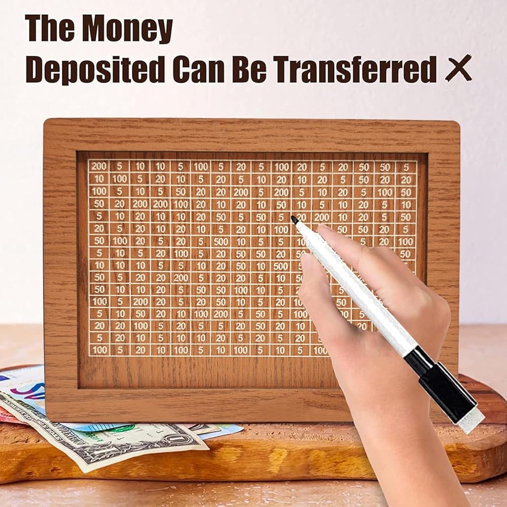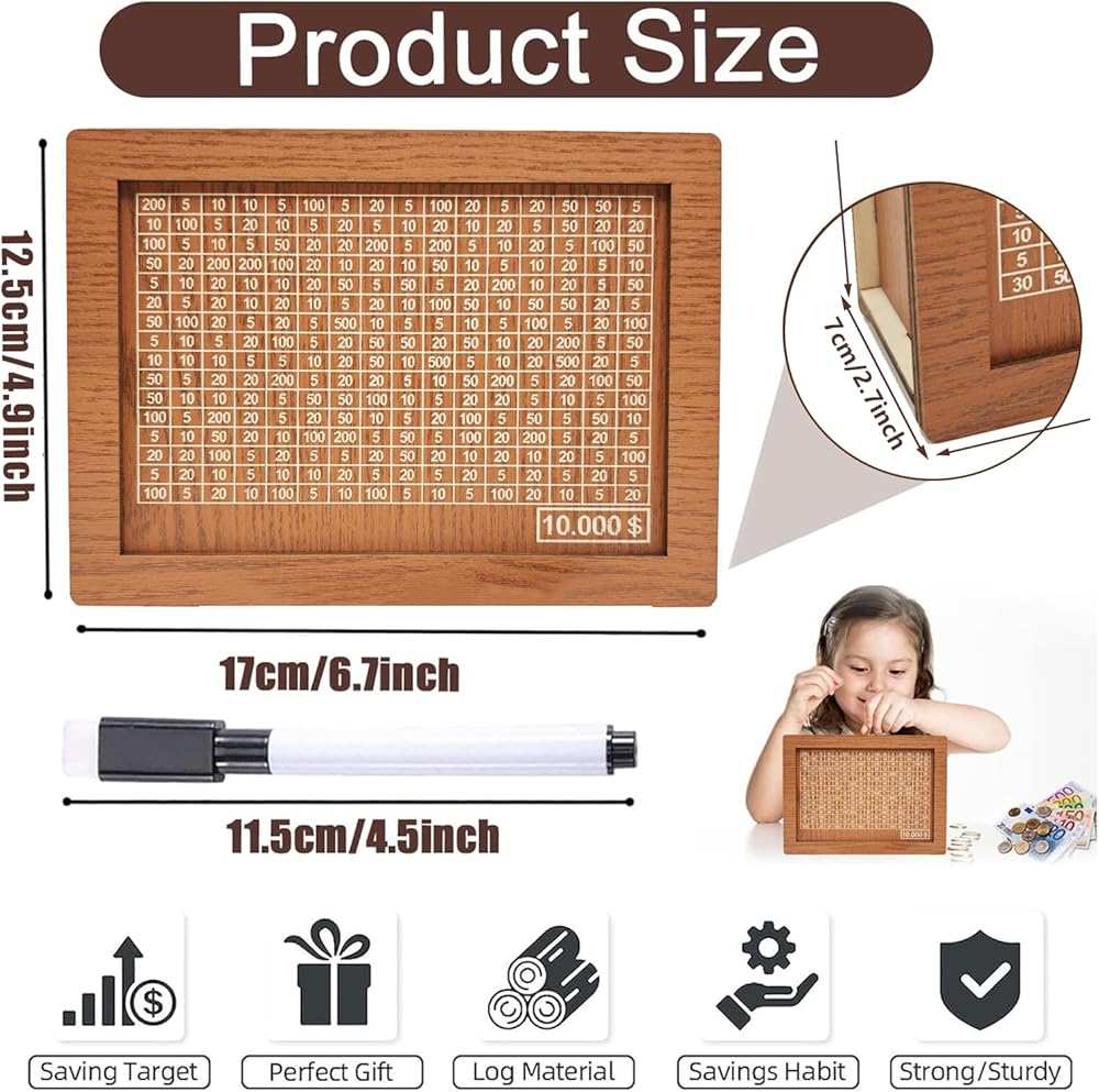 【Cash Vault Wooden Savings Box】This wooden money box allows you to save for your dream item at your own pace. You can print your own number on the box or use the provided. With its easy-to-read numbers and ticks, you can effortlessly keep track of your savings.