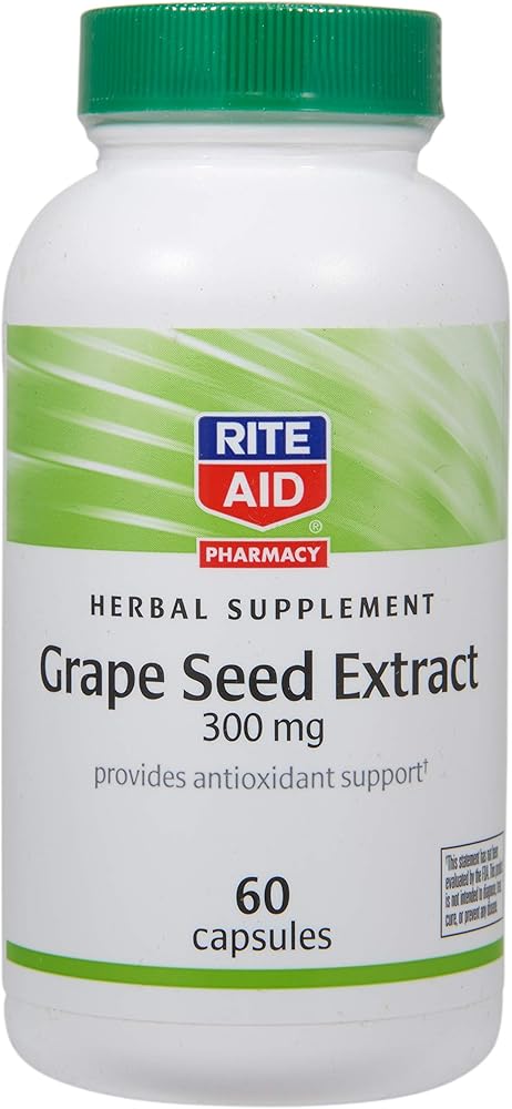 EASY-TO-TAKE CAPSULES: Rite Aid 300 mg grapeseed extract capsules supplements provide daily herbal antioxidant support. Plus, these Rite Aid grape seed capsules offer easy dosing whenever you need it— at home, work, or on-the-go.