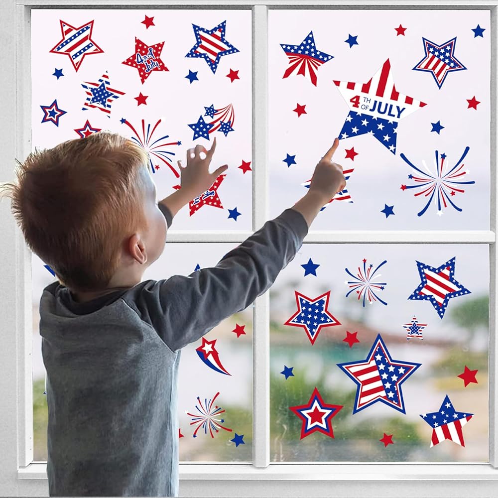 4th of July Window Clings Patriotic Independence Day Labor Day Window Stickers, USA Stars Veterans Day, Fourth of July Window Decorations for School Home Office Party Supplies