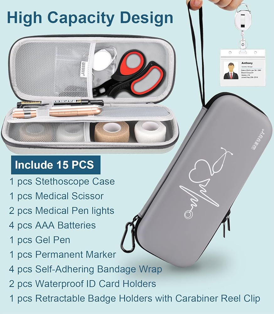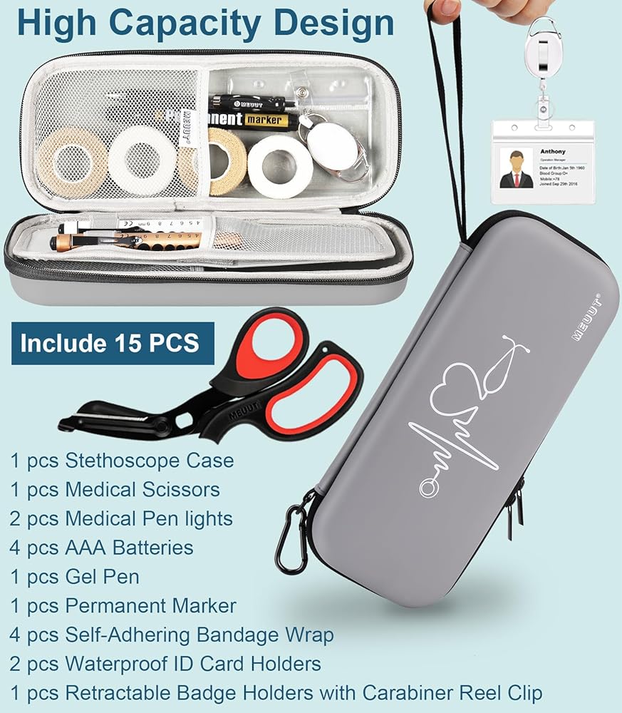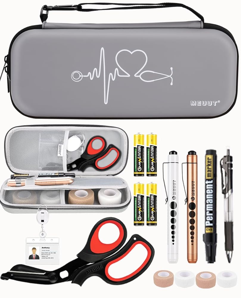 MEUUT 15 pcs Stethoscope Case Kits, Perfect Nurse Gift First Aid Kit with Stethoscope Case, Medical Scissor, Penlights with Batteries, Bandage Wraps, Badge Holders, Nurse Accessories for Nurses
