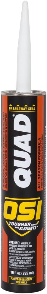 Arm yourself against the elements with OSI Quad Window, Door & Siding Sealant. OSI Quad Window, Door & Siding Sealant is an all-season formula designed for superior performance on exterior window, door and siding applications, fiber-cement and vinyl siding, PVC trim, and much more. It can be applied to wet or dry surfaces, even at freezing temperatures and, unlike other sealants, it resists dirt and dust collection, yellowing and water washout. OSI Quad bonds without a primer to most common substrates like cedar, painted or stained woods, fiberglass, vinyl, coated aluminum, steel, metal, brick, masonry and concrete. With resistance to UV and extreme temperatures (20°F to 120°F) and proven wet surface application, OSI Quad is the versatile and durable choice for professional contractors. OSI Quad is self-tooling and once cured is paintable with latex paints. Our color specialists work closely with leading window, door and siding manufacturers to ensure perfect color matches. OSI Quad is composed of elastomeric polymers and high quality synthetic resins. OSI offers an arsenal of adhesives, caulks, and outdoor construction sealants for the true professional. OSI: Tougher Than the Elements.