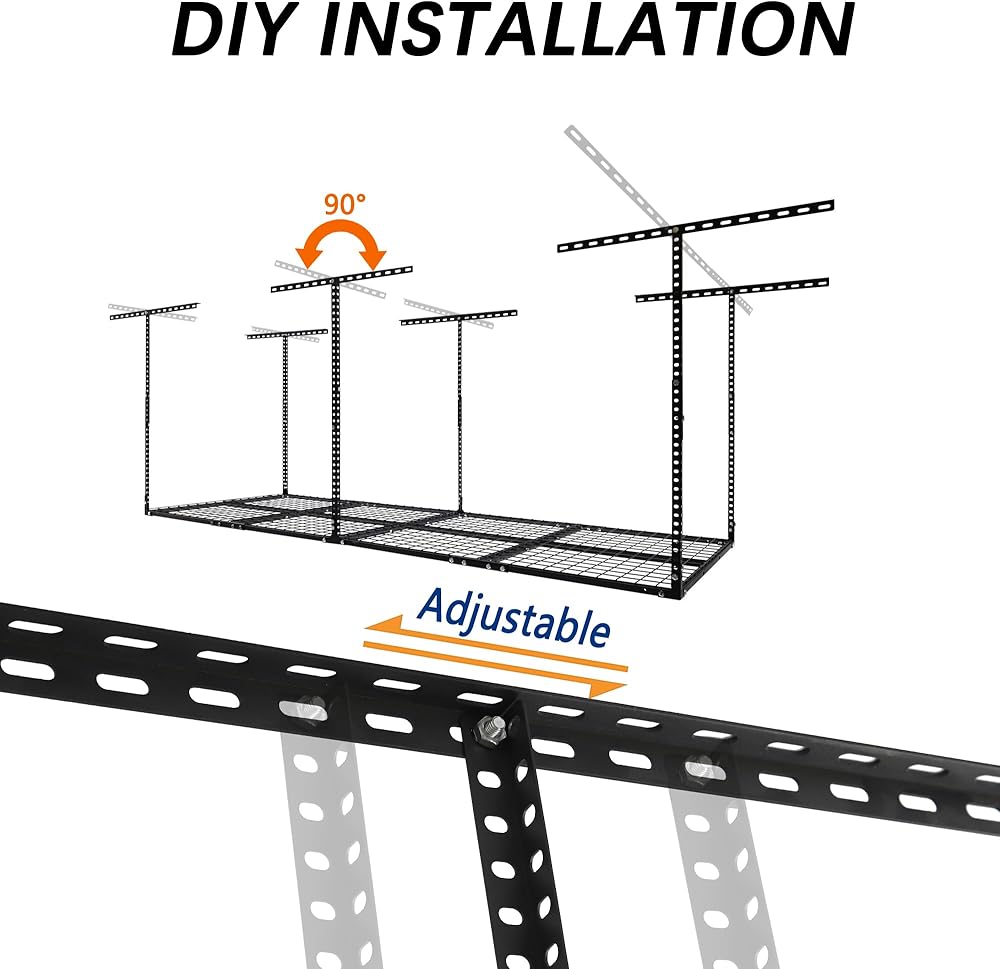 ADJUSTABLE HEIGHT: Our garage storage racks are height adjustable, giving you the freedom to adjust the distance between the rack and the ceiling from 22 inches to 42 inches. This 3 FT x 8 FT ceiling mount rack adds up to 82 cubic feet of storage space.
