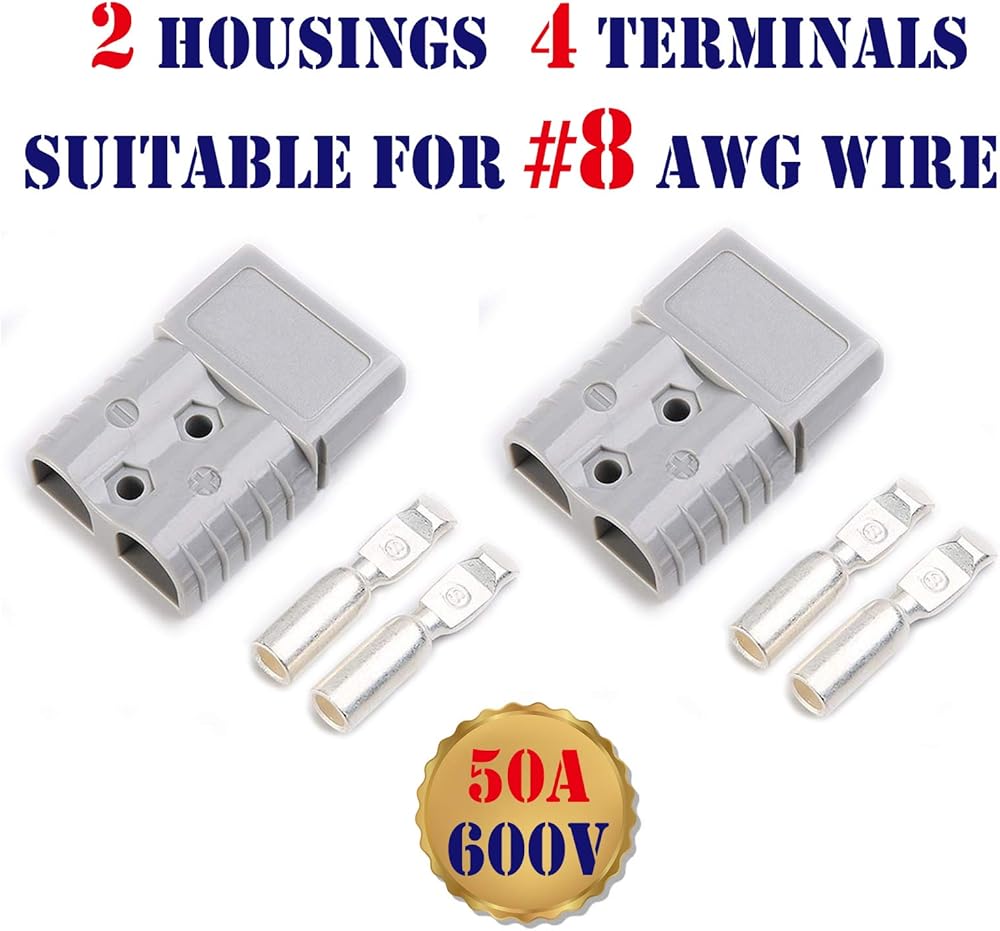 Name: 1 Set 50Amp 2 Poles Power Connector Plug Grey w/Terminals for #8 AWG Wire Anderson Compatible