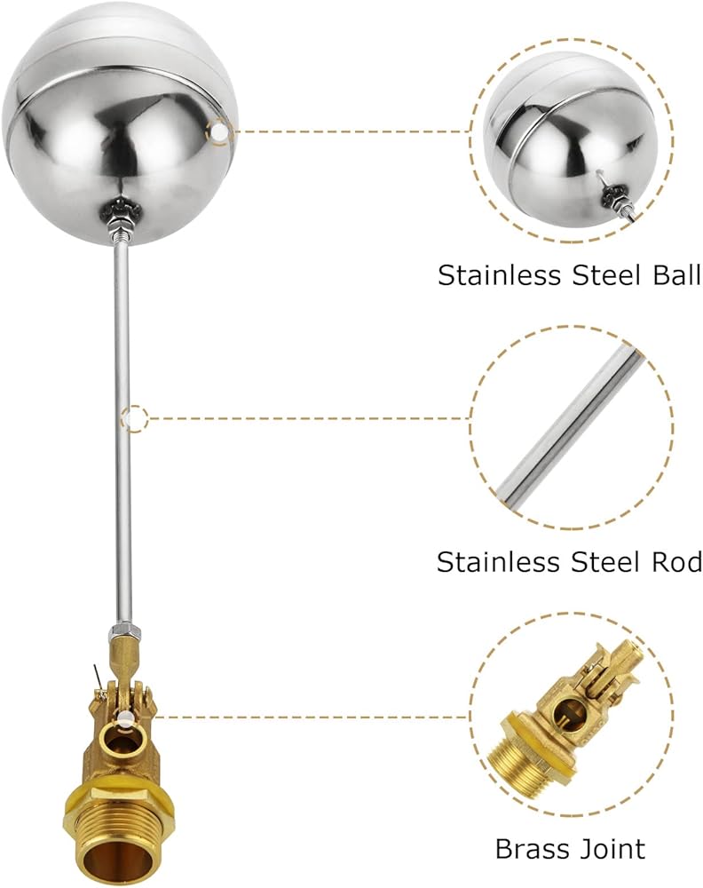 ABuff Float Valve for Water Tank Stainless Steel Float Ball Valve 3/4 Inch DN20 Floating Ball Valve Switch Automatic Brass Toilet Valve Float Valves for Stock Tank Pool Water Level Control (2 Pack)