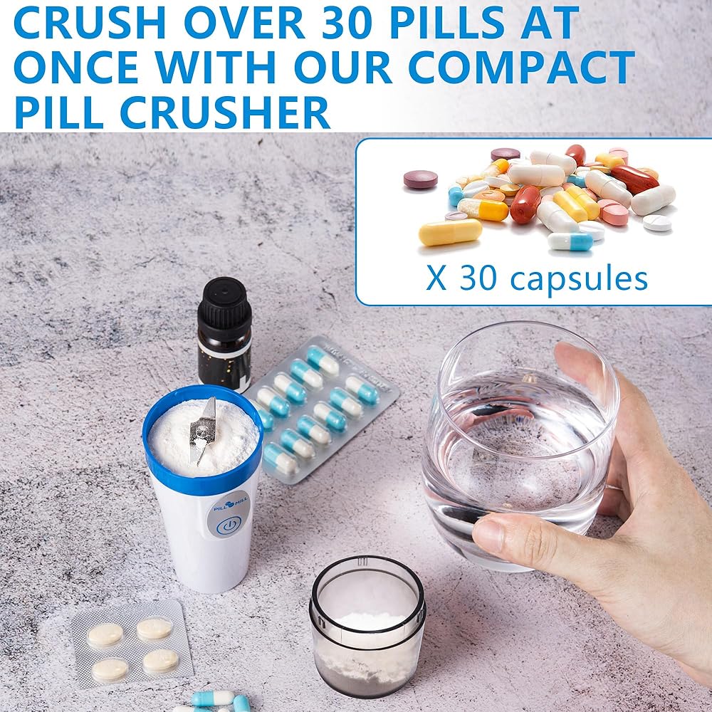VERSATILE & EFFICIENT CRUSHING POWER: Don't let its small size fool you; our compact pill crushers can efficiently grind more than 30 tablets of any size. With its powerful grinding mechanism, it effortlessly transforms both large and small whole pills and tablets into a finely powdered form, ensuring effortless medication management.