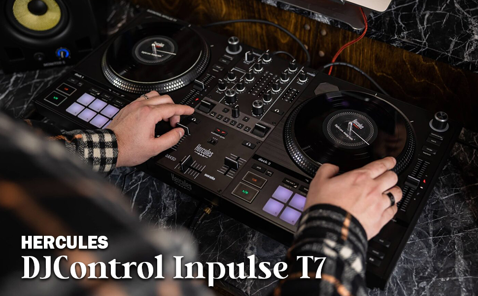 Hercules DJControl Inpulse T7 2 Deck Motorized DJ Controller with built in STEMS Control Bundle with DJControl Inpulse T7 Cover and Hercules HDP DJ45 Closed-Back Headphones