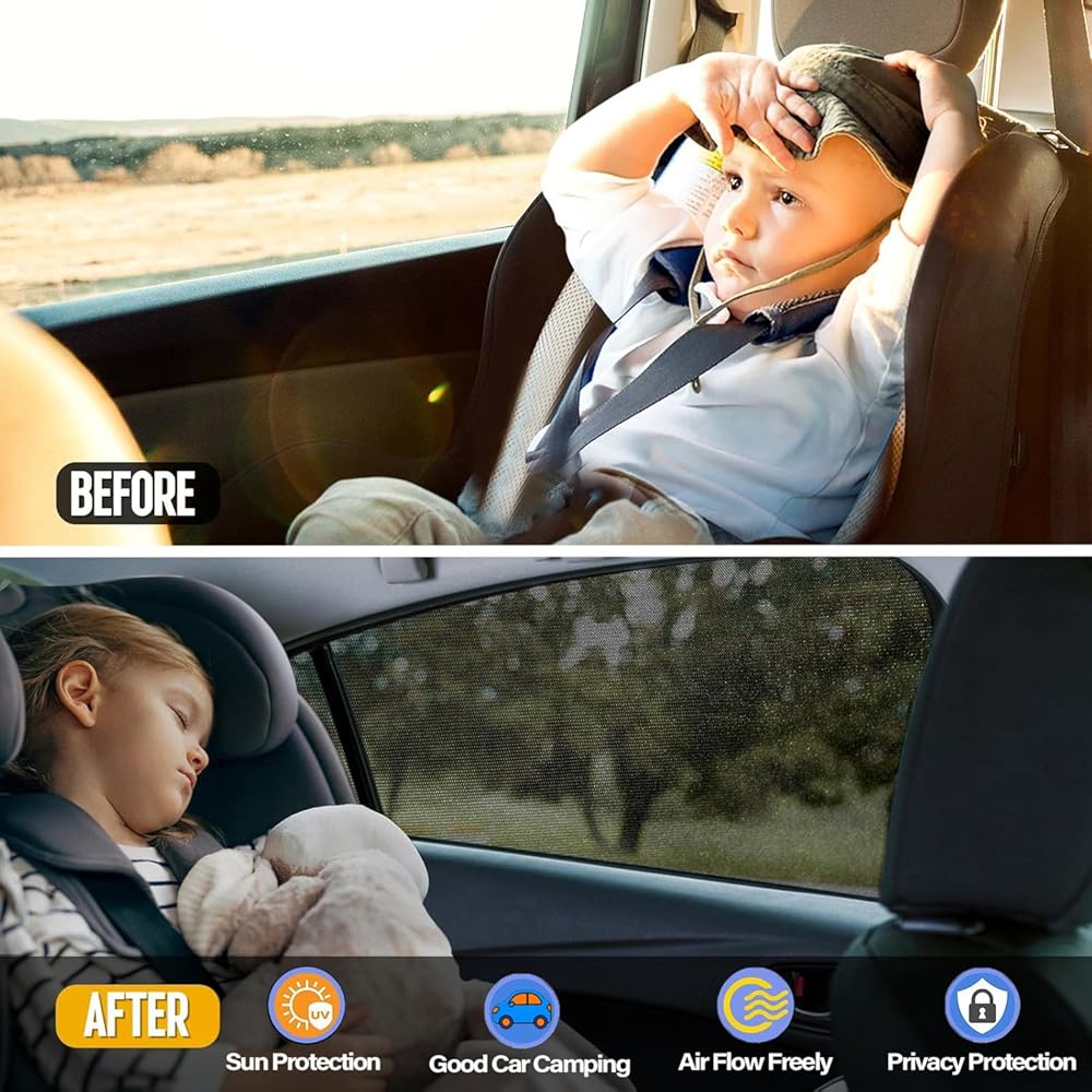 【Reduce Harmful Sun Rays and Keep Your Car More Cool】: Our car window sunshades adopt a double-layer precision mesh structure, which can reduce the penetration of UV rays , sun glare and car interior temperature ,making your journey more enjoyable.