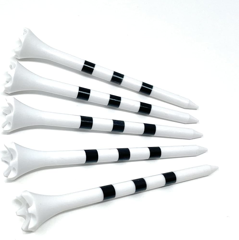 - 3 ¼” inch White Tee with Three Black Stripes - High Visibility Design - Easy and Consistent Depth Placement. Tee it up at the same height every time!