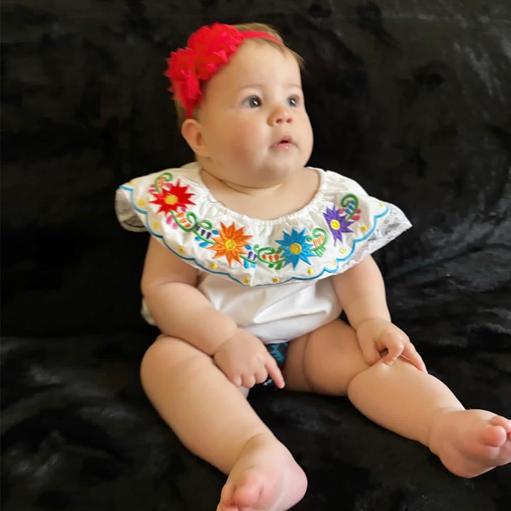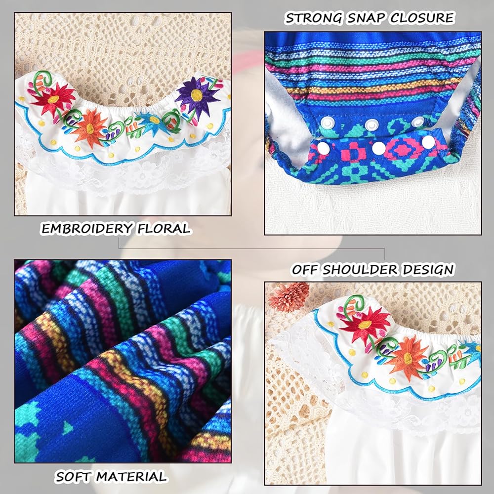 🌮【SUITABLE OCCASION】HINTINA Mexican outfits is perfect for baby Cinco De Mayo, daily casual wear, photo shooting, day of the dead dress outfits, baby fiesta dress, Mexican theme birthday party and other special occasions.