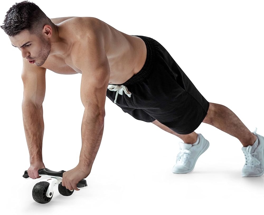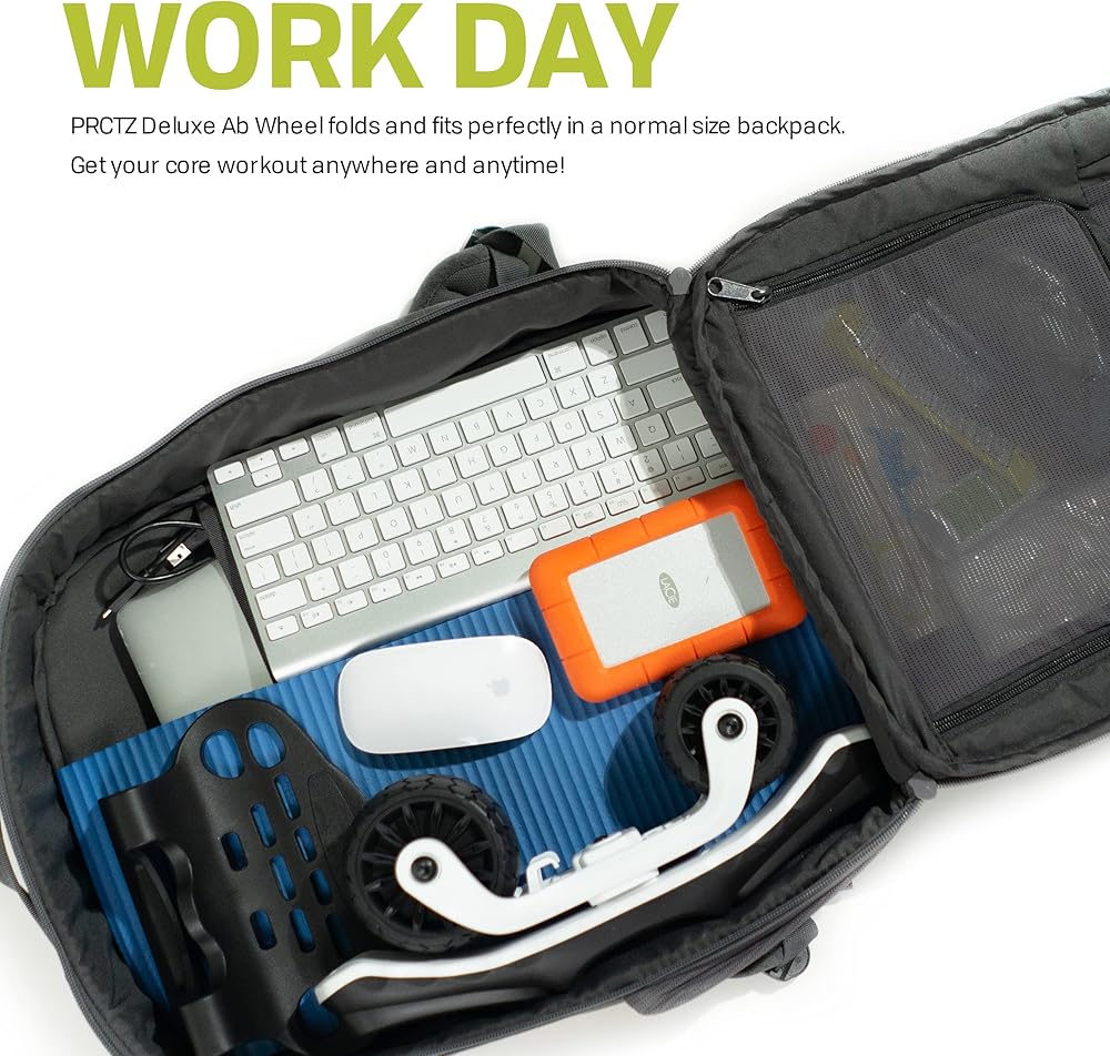 PRCTZ Ab Wheel with Rotating Handle, The Most Portable Abdominal Wheel, Non-slip Handle, Antiskid Wheels, Braking Pad and Knee Pad Included, 225 LB. Weight Capacity