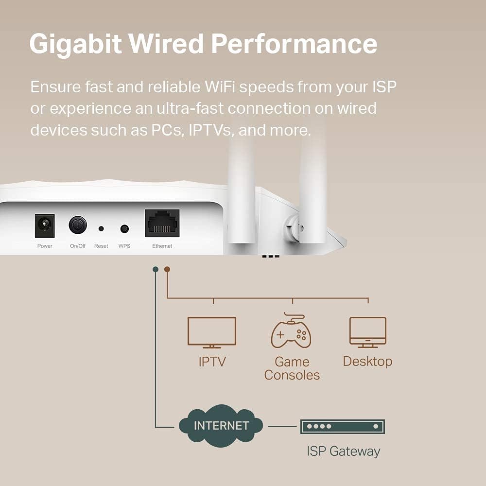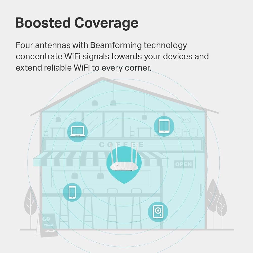 【Boosted Wi-Fi Coverage】Four external antennas equipped with Beamforming technology concentrate Wi-Fi signals towards your devices to extend reliable Wi-Fi to every corner of your home or office—even over long distances.
