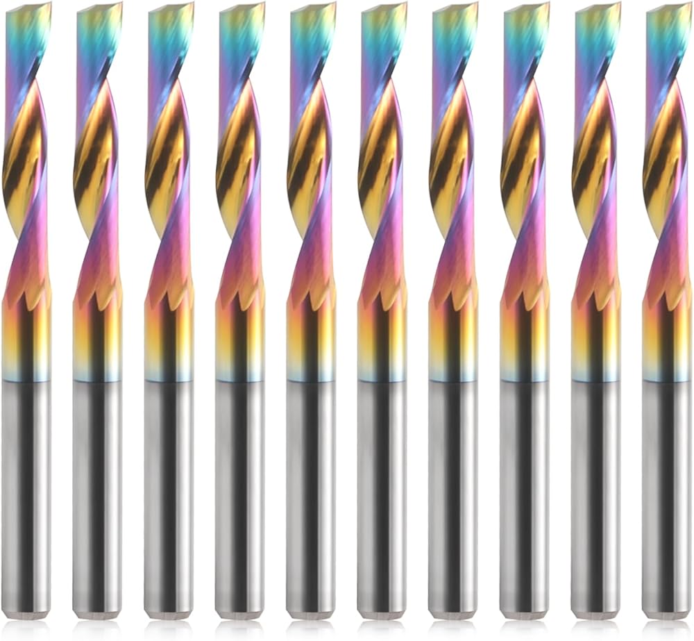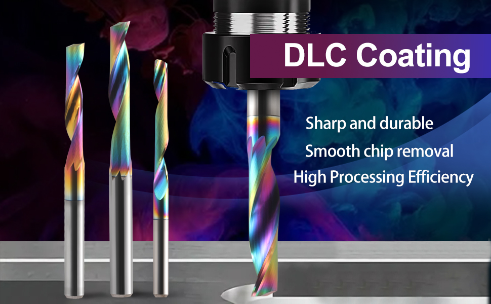 ❇️DLC(Diamond-Like Carbon) Coating 1/8 inch shank CNC end mills for Aluminum has the advantages of Ultra-High Hardness, Low Friction Coefficient, High Temperature Resistance, Good Electrical Insulation, Chemical Barrier, High Thermal Conductivity, Ultra-High Anti-Blocking