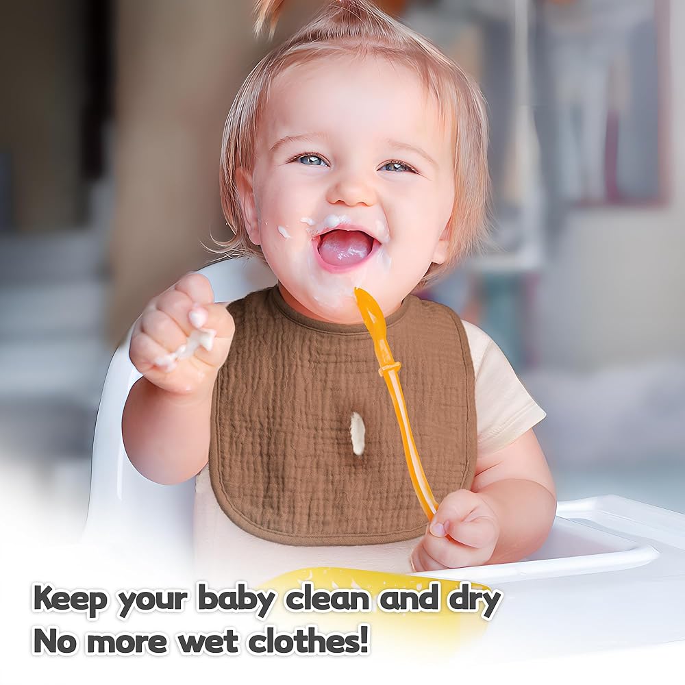 Soft & Superior Absorbency: Our Susurration Muslin Baby Drool Bibs are crafted from 100% cotton muslin on the front, they are backed with water-resistant soft plush to ensure maximum absorption with a skin-friendly, gentle touch for your baby's skin. The dual-layered design ensures both you and your baby remain free from wet clothes all day long.