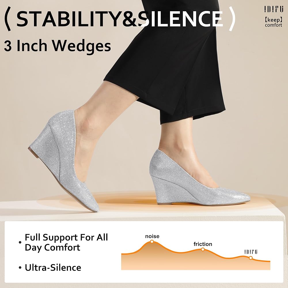 Practicability: Wedge shoes is designed with lightweight material for easy walking all-day. Designed with practical silent mat, these wedge pumps deliver an ultra-silence experience for you on any occasions. Thoughtful in the back part add extra cushioning, easy to walk without grinding the heel.