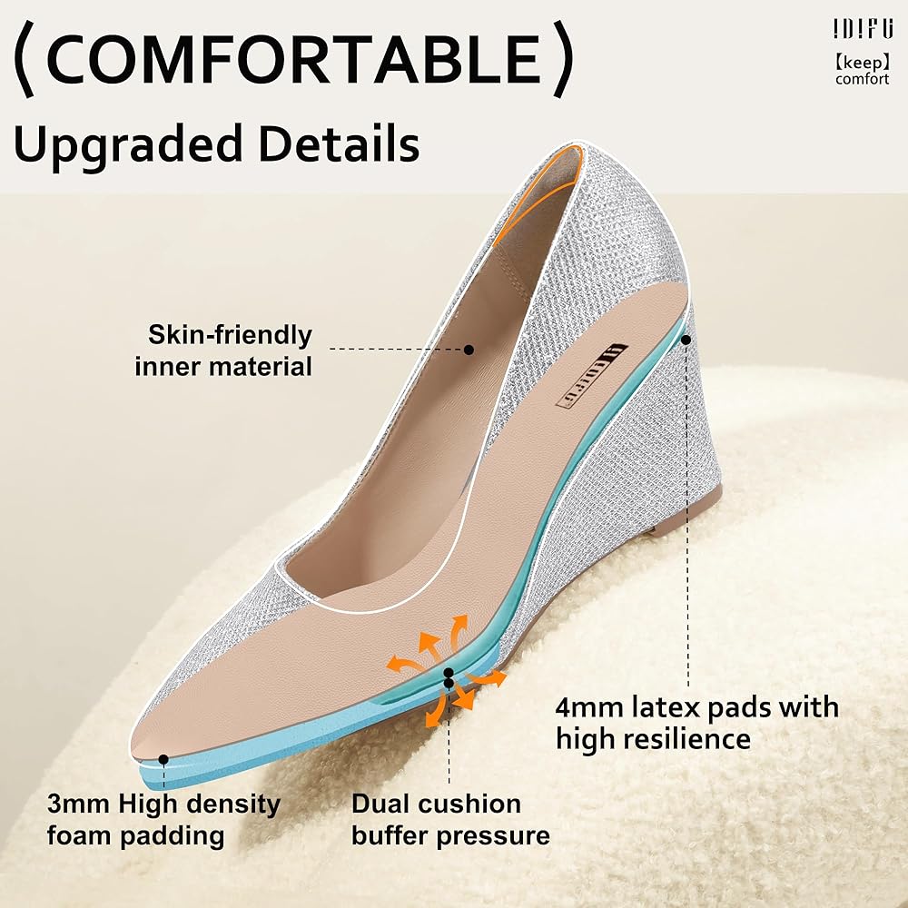 Stylish Design: On the basis of the wedges, the trendy design of the typical pointed toe pumps is retained. The pointed toe design of these closed toe heels with the right 3 inch heel appropriate embellishes the leg shape to show your beauty. The epitome of comfort and elegance graces your life.