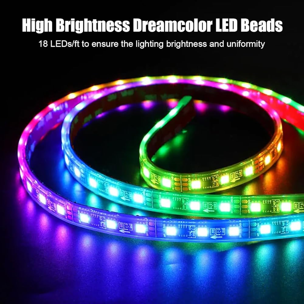 Dreamcolor & Chasing Mode: This car underglow light is one of the very few products on the market which with chasing effect. Built-in color chasing modes looks like recurrently chasing, skipping, dancing, twinkling on the strip, give you an amazing visual experience. If you don't want the chasing or flashing mode, you can also choose a static color mode in APP.