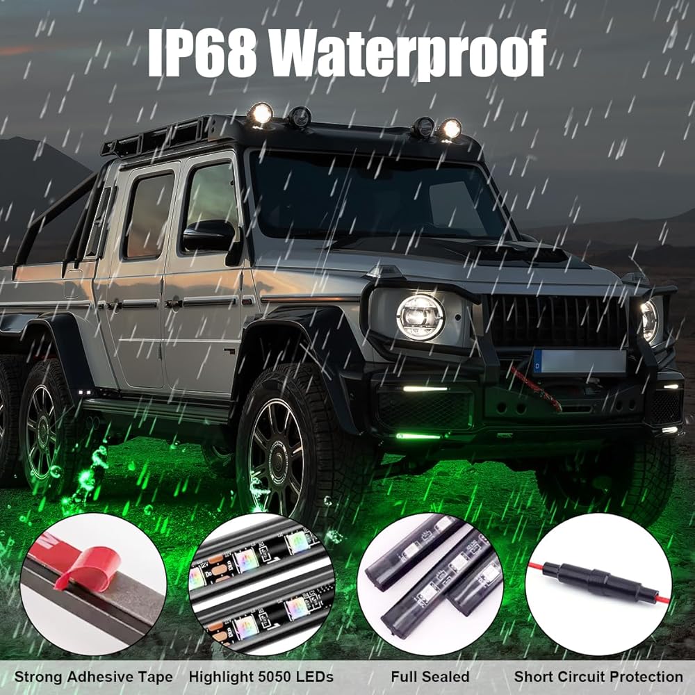 New Design & High Quality LED: Car underglow LED light is soft and flexible, can be arbitrarily bent, completely waterproof IP 68.Using SMD5050 RGB LED,18 LEDs/ft(instead of 9 or 12 LEDs of other brands)ensure lighting brightness and uniformity as well. A total of 250pcs LED! Remember this key difference with other products!!!