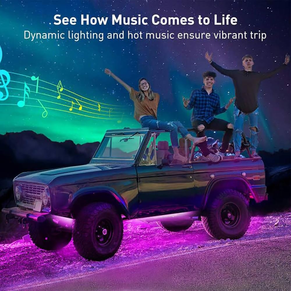 Multiple Modes & DIY: Jumping/breathing/flashing/gradual change colors/sync to music. There are 210 preset modes, you can also DIY colors and modes combination just by your phone! In music mode,the light's color, brightness and speed sync to your favorite song on the trip. Just enjoy every beat to the fullest when driving!
