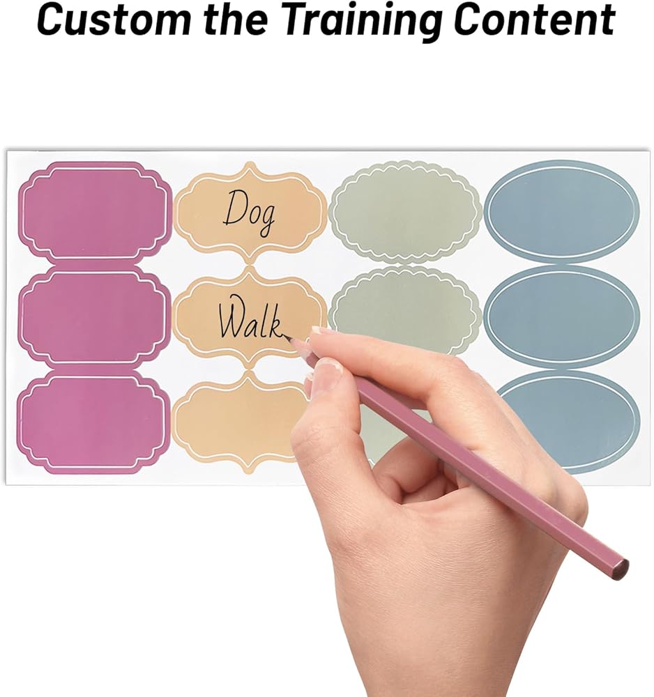 Custom Pet Training labels: 1pc blank paper stickers could be written easily, and you could customize the labels as you like to train the dogs or cats. It is OK to train non-verbal kids as well!