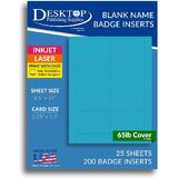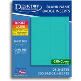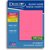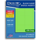 Desktop Publishing Supplies Brand 65lb Bright Colored 8up 2.25x3.5 Name Badge Inserts Sheets make it simple & affordable to create name badge insert cards from your home or office printer. These high quality sheets are microperforated with 72 perforations per inch for easy breaking apart and cleaner edges. Our Blank name tag cards are created to work with the industry standard 8up name badge card layout- making them work with virtually all design software! Each card measures 2 1/4" x 3 1/2". These cards are made from a 65lb Cover (176 gsm) Bright Colored Cardstock that is both inkjet and laser printer compatible.
