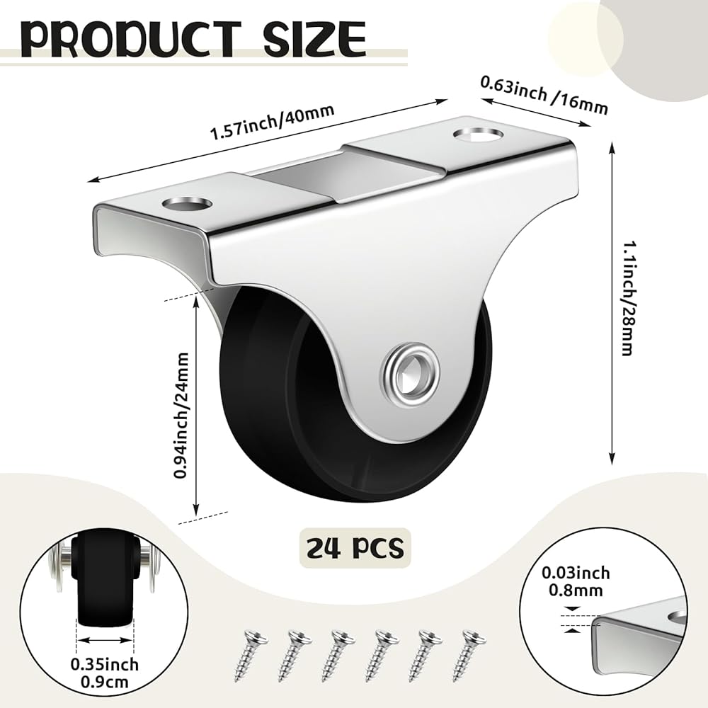 Size: about 1 inches/ 24 mm in wheel diameter