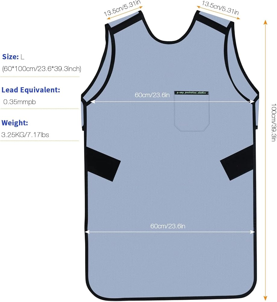 ✔Dimensions: 60*100cm/23.6*39.3inch (adjustable with velcro);Lead equivalent: 0.5mmPb; Weight: 4KG/8.8lbs