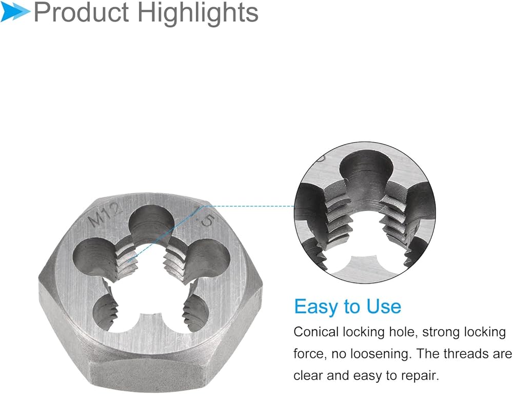 --- The heat-treated carbon steel die has high torque, good wear resistance and durability. Designed with a tapered locking hole, the die locks firmly and does not loosen when cutting external threads.