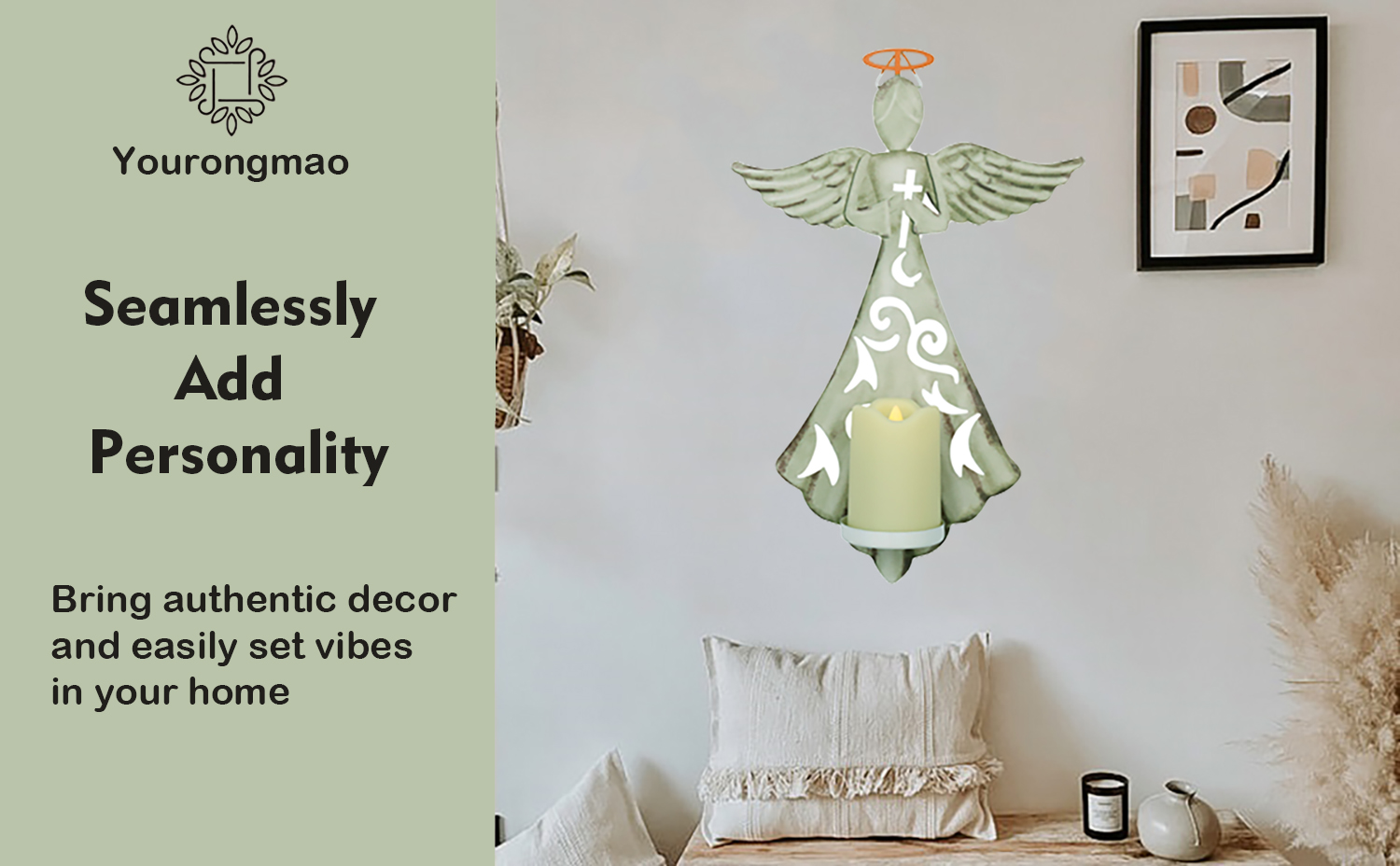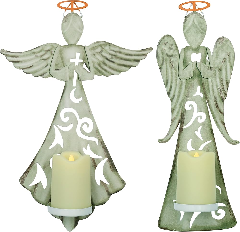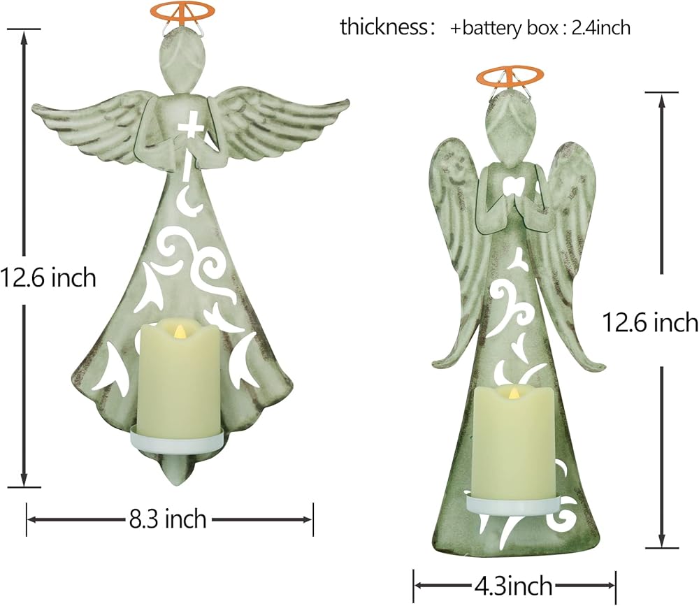 Elevate your home, church, or office decor and showcase your faith with this stunning Metal Angel Wall Cross Decor! Featuring a beautiful design and an LED candle, this piece is the perfect addition to any religious setting.