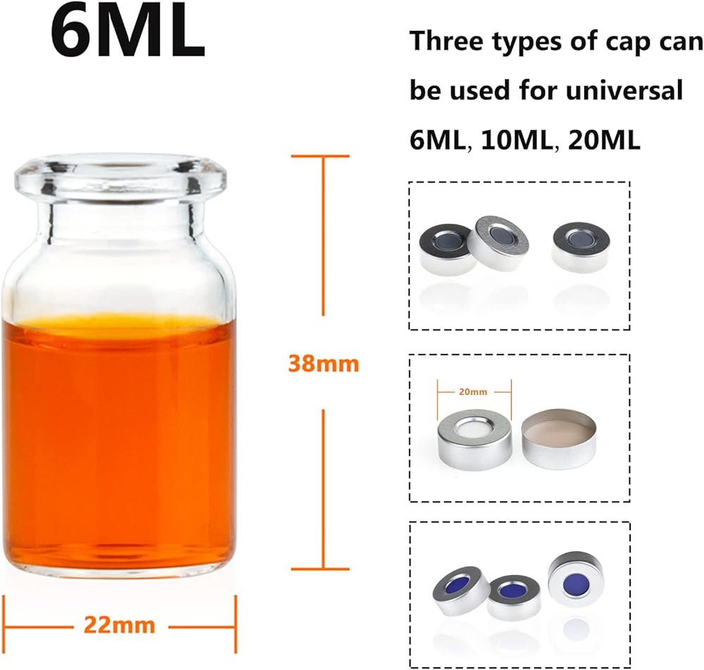Size: 22.5*46mm, the vial mouth outer diameter is 20mm,20 mm crimp seal finish are designed to fit most headspace autosamplers