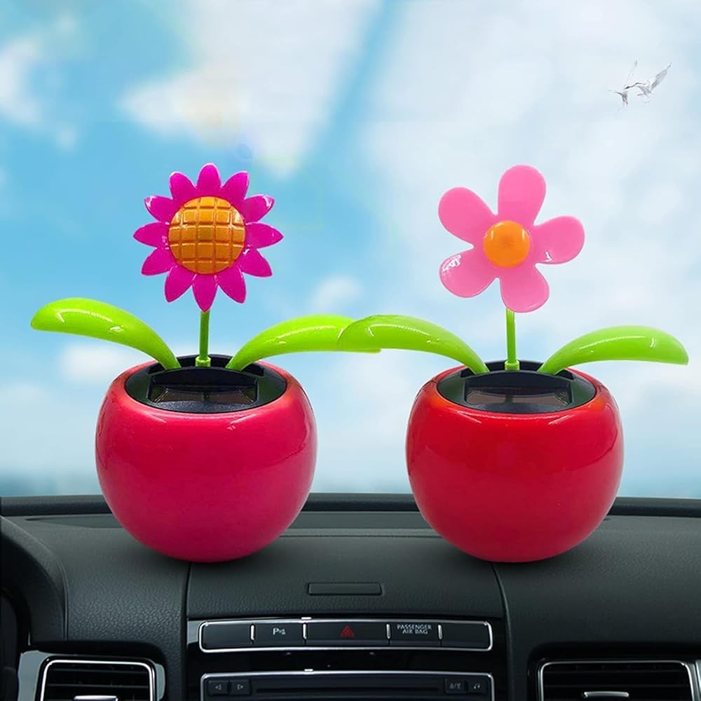 Red Solar Dancing Flower Car Dashboard Decorations - Funny Solar Powered Dancing Flower Pot Car Ornaments Flower Swinging Toy for Car Decor, Funny Gifts for Friends Solar Power Kits