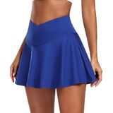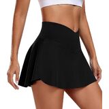 Crossover V cut Skirt with Built in Shorts>>> Tennis skirts for women was designed 2-in-1 Skort. Trendy v cut elastic wide waistband points out your waistline and fashionable during your workout. Composed with skirt outer and built-in lining shorts inner. Lining shorts helps to avoid embarrassment, tennis skirt with built-in shorts also gives you secure coverage while doing sports