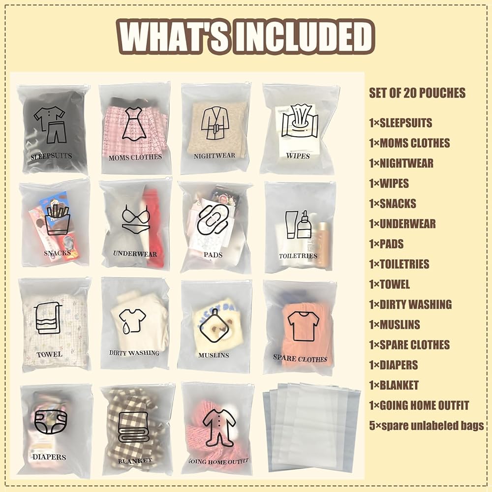 BYXVSBYS 20 Pack Hospital Bags for Labor and Delivery,11 x 14 Inch Maternity Hospital Bag Essentials for Mommy Dad Newborn Baby,Diaper Bag Organizing Pouches First Time New Mom Must Haves