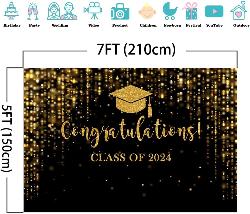 ❤【WIDELY USED】This backdrop is perfectly used as class of 2024 party decorations or cake table banner or photo studio photography or wall decor or video decorations. It'll definitely be a hit for your special event!